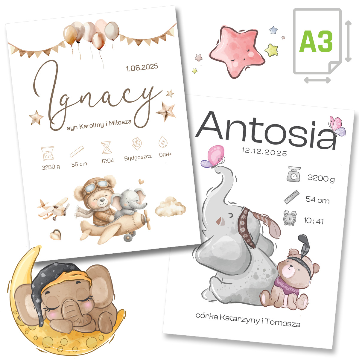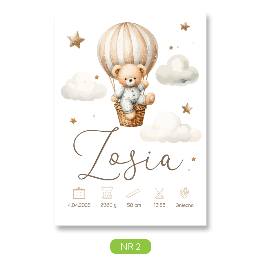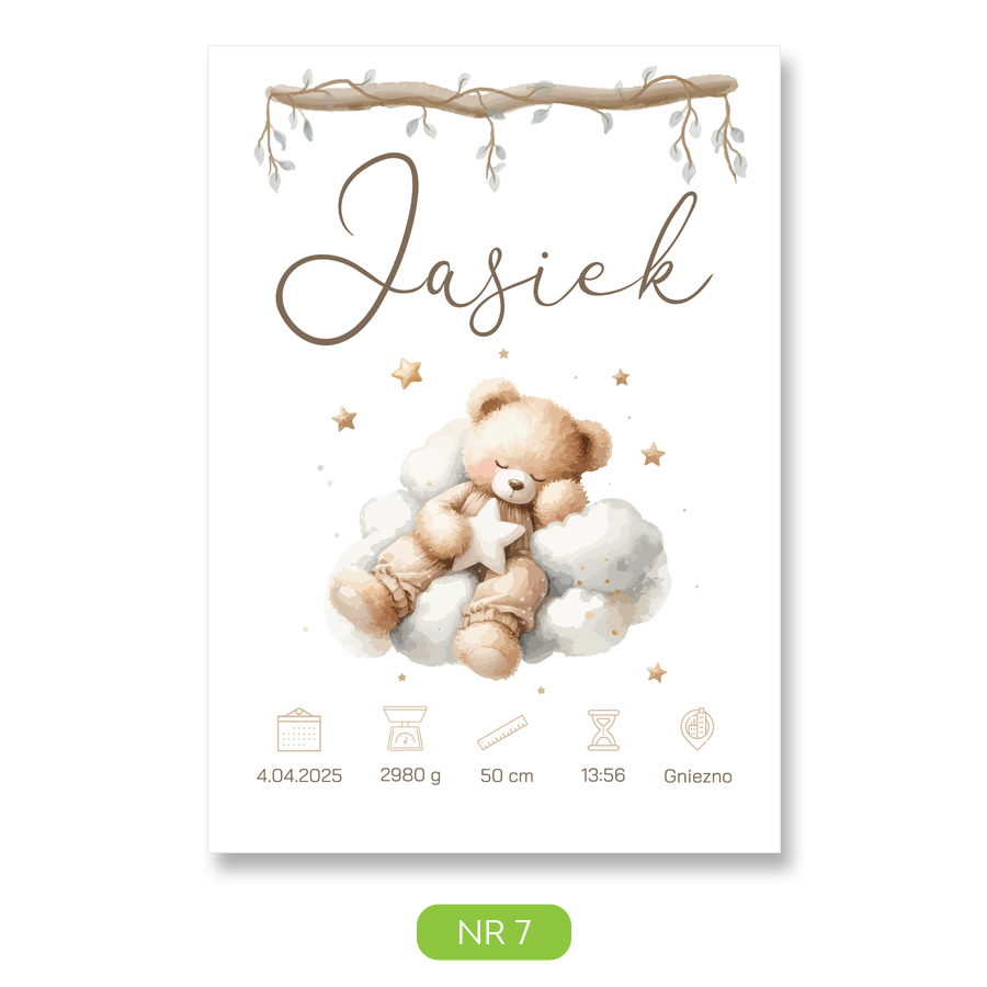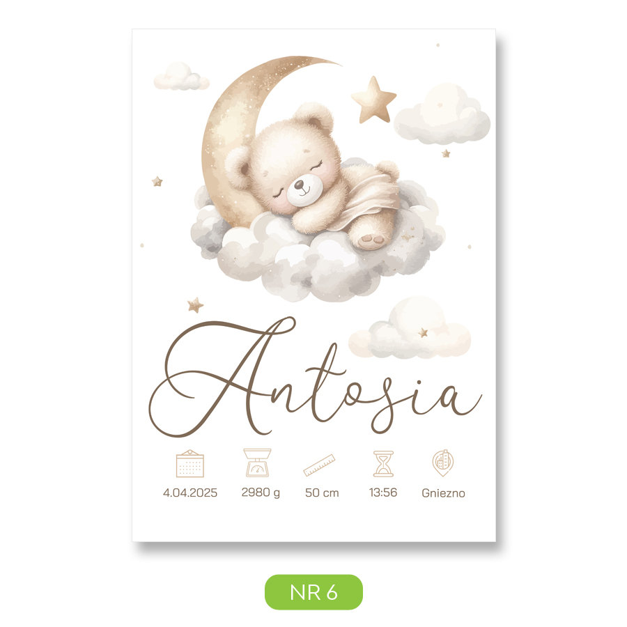 Piękna pamiątka narodzin w delikatnym, bajkowym stylu. Idealne uzupełnienie ściany w pokoju maluszka. 🤍