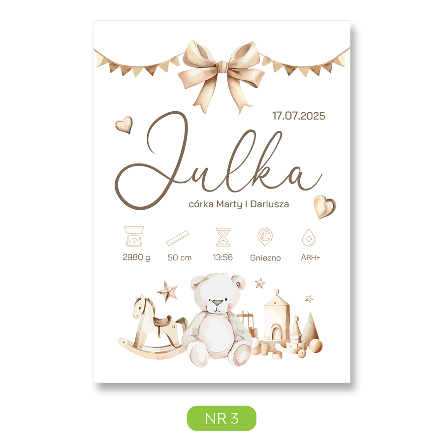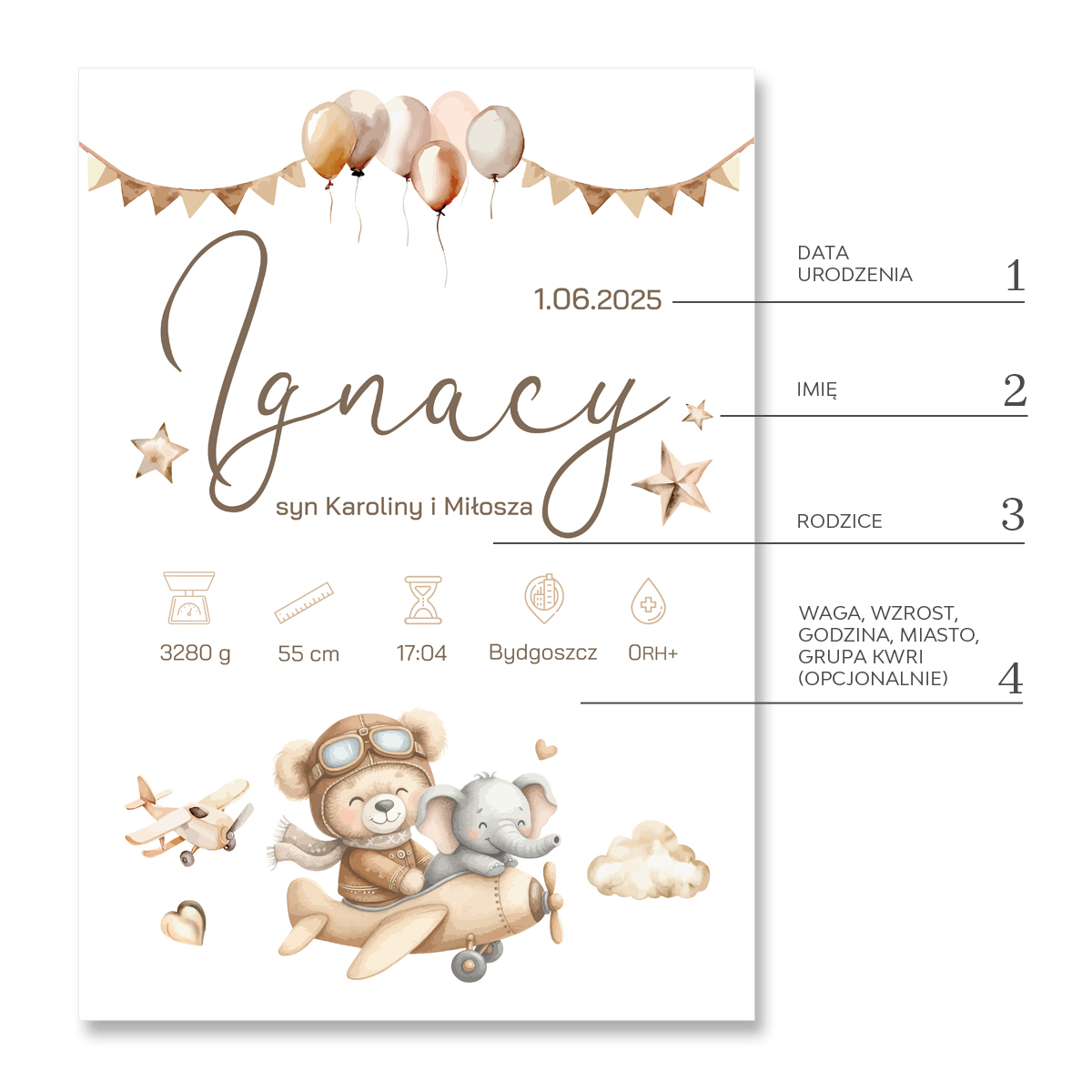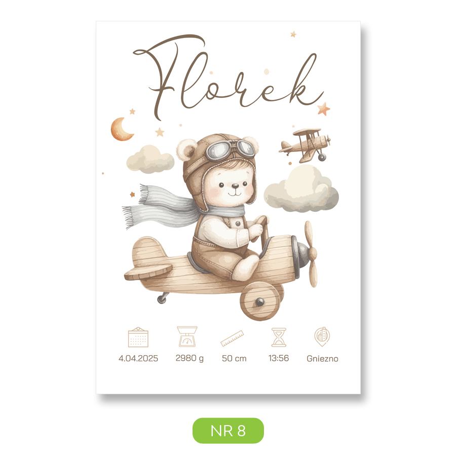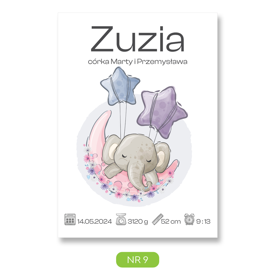 Piękna pamiątka narodzin w delikatnym, bajkowym stylu. Idealne uzupełnienie ściany w pokoju maluszka. 🤍